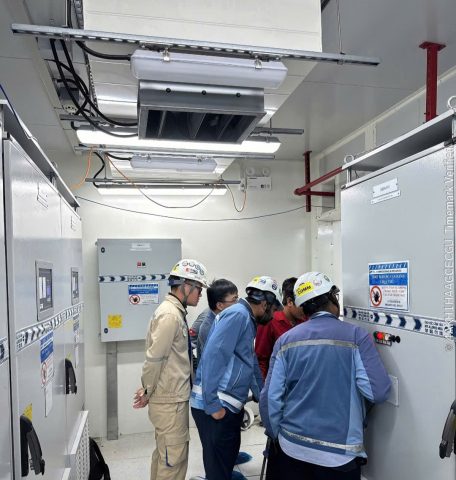 Hình ảnh phối hợp giữa tổng thầu Samsung C&T, kỹ sư của ETRC và chuyên gia nhà sản xuất trong quá trình chạy thử nghiệm thu hệ thống các tổ máy LNG với NSMO